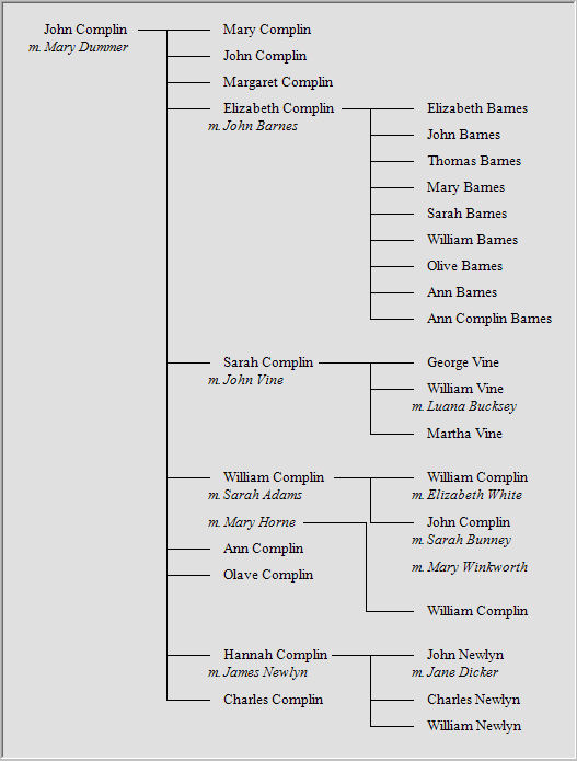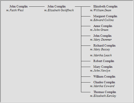 The chart on the right shows three generations of Mary Complin’s ancestors. For information