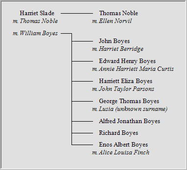 Harriet had one child with her first husband, Thomas Noble, and seven with her second, William Boyes.