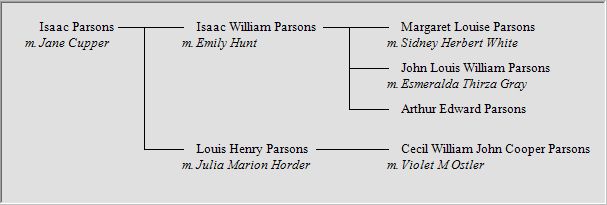 Sidney Alfred Parsons and his AncestorsIsaac Parsons was an uncle of Sidney Alfred Parsons, the person at the root of the family tree described in these web pages.