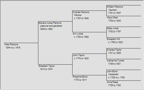 Sidney Alfred Parsons and his AncestorsMary was an aunt of Sidney Parsons’. Her brother John was Sidney’s father and John was the present author’s great-grandfather.