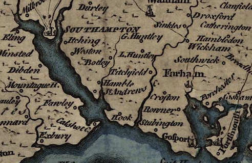 Hamble (or Hamble-le-Rice) is a village on the shore of the Solent about five miles south-east of Itchen Ferry. Hamble, like Itchen Ferry, had a strong maritime tradition — the warship HMS Elephant, which was built in Hamble in 1786 while Thomas was living there, was Lord Nelson’s flagship at the battle of Copenhagen.