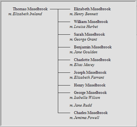 Dorothy Bennett and her AncestorsThomas Misselbrook’s granddaughter Frances Bennett was a grandmother of