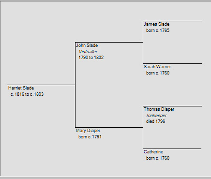 Sidney Alfred Parsons and his AncestorsHarriet Slade was baptised on the 20th of April 1816 in Hamble, a coastal village near Southampton in Hampshire. Her father John Slade was, at the time, a shipwright and her mother Mary was from the well known seafaring Diaper family of the village of Itchen Ferry, just across the river from Southampton. Mary’s father Thomas Diaper had been an inn keeper in Hamble, and so was her sister Rosetta’s husband, John Grace, who became a great friend of Harriet’s father. Harriet was John and Mary Slade’s second daughter. Soon after she was born her father, John, took up the licensed trade himself and Harriet grew up in the Cross House area of Southampton (near the western end of the present Itchen bridge) and later at the Anchor Inn in Bishopstoke, a few miles north of Southampton.
