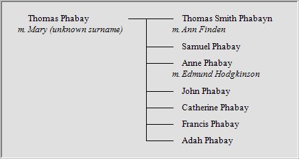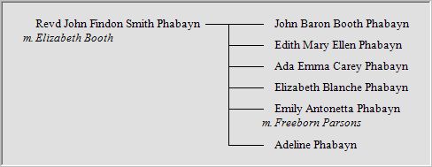 Sidney Alfred Parsons and his AncestorsPhabayn is an unusual surname which might have originated in Ireland. It was unfamiliar to the officials in England who kept formal records and they recorded it in several different ways. Phabayn was the commonest spelling and seemed to be that preferred by most of the family members themselves but Phabay was common (especially with the earlier members), Fabaen was sometimes used, or even Phebe or Phabe.